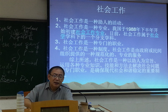 董黎明介绍,社会工作是个新兴专业,是一种以助人为宗旨,运用各种专业知识、技能和方法去解决社会问题的专门职业,是确保现代社会和谐稳定的重要制度。而社会工作者则是遵循助人自助的价值理念,运用个案、小组、社区、行政等专业方法,以帮助机构和他人发挥自身潜能,协调社会关系,解决和预防社会问题,促进社会公正为职业的专业工作者。董黎明以中国一些突出的社会问题作为例子,深入浅出地分析了当前中国社会工作面临的主要挑战,包括人与人之间关系的不和谐、人与环境之间关系面临的严峻挑战等问题,指出这些问题都是由较为低下的社会工作水平造成的。那么我们又该如何提升社会工作水平呢?针对这些问题,董黎明认为,我国社会工作起步较晚,我们首先要提高社会工作者的素质、提升社会工作者的影响力,掌握人际交往的艺术,同时还要加强沟通等方法来提升社会工作者的能力,进而提高社会工作水平。