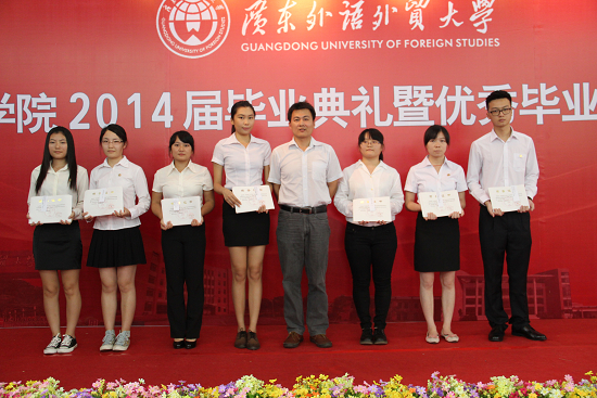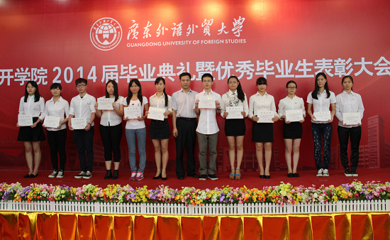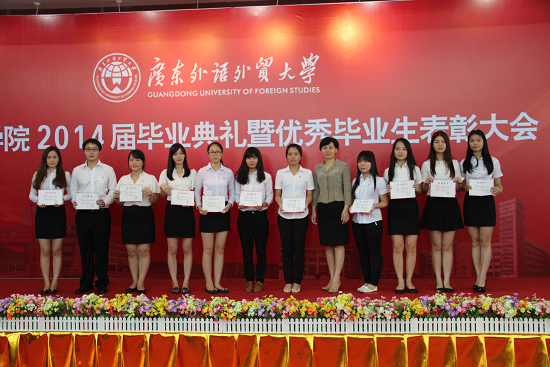 随后,孙亚玲宣读了《关于表彰 2014 届优秀毕业生的决定》,任跃忠宣读了《关于表彰2014年1月及4月自学考试“统考高分奖”获奖学生的决定》,曾健文宣读了《关于颁发2014 届本科毕业生结业证书的决定》,院领导为获得表彰的同学一一颁奖并合影留念。