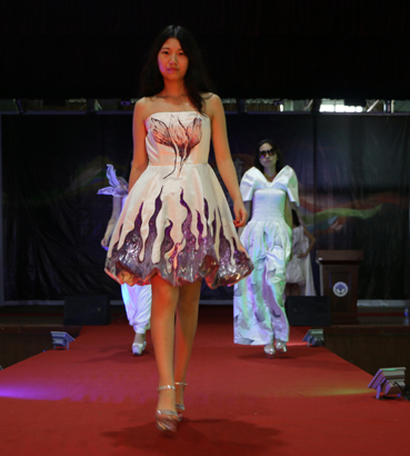 蝶舞青春,炫衣飞扬。服装秀共进行三场,主题分别为狂野、休闲、礼服。李建煌的作品《希特勒的战争》拉开第一场狂野服装秀的序幕,服装风格继承古罗马重视军容的传统,在军装的设计上不遗余力融入了相当的美学成分,李建煌坚信艺术对政治与军事效果影响力:政治在艺术中表达自己,艺术反过来促进、加强国家政权。郑白莉的作品《Marry me》用《未婚妻》作背景音乐,服装充分体现年青人对爱情的坚定和希冀。最隽永的感情是彼此陪伴,成为对方的阳光,等待在最合适的年龄穿上最美的衣服嫁给最爱的人,在那一天看到最美的自己。