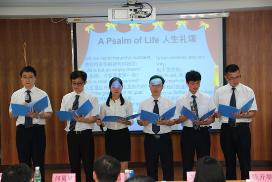 本网讯 6月19日下午2点30,第三期南航运指系统骨干签派员高级英语研修班结业典礼暨汇报演出在北校第九教学楼黄华讲堂隆重举行。南航股份公司运行指挥中心副总经理毕华飚、南航股份公司人力资源部经理蓝景林、南航股份公司运行指挥中心人力资源处经理刘政、继续教育(公开)学院院长何勇斌、党委书记苏冬燕、副院长陈开举,专用外语培训部主任吴文权及全体任课教师和学员参加了典礼。