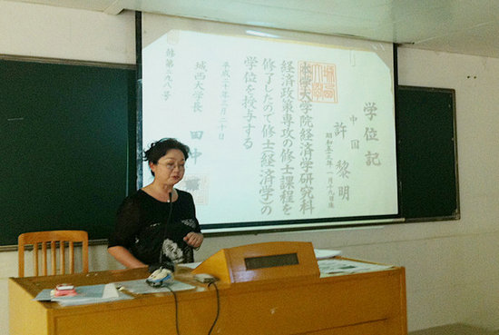 接着由刘小珊教授讲话。她结合日语浸泡营的实际情况以及自身丰富的教学经验,就如何引导学生选择将来所学专业,如何帮助学生学习等方面做了详细的解说,并对即将留学的学生做离别赠言。她风趣幽默的语言博得了学生家长们的阵阵掌声。