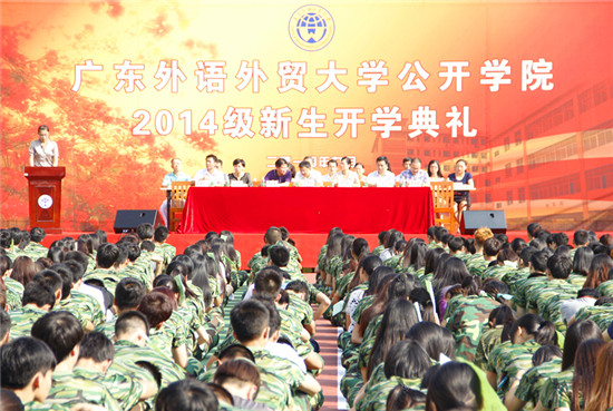 本网讯 9月15日和9月17日上午,公开学院2014级新生开学典礼分别在夏茅校区北区篮球场、校本部第六教学报告厅隆重举行。上午8点,2014级全体新生在辅导员的带领下,以饱满的精神,迈着有力的步伐徐徐进入会场。学院全体领导及广东建设职业技术学院副院长陈跃军出席了开学典礼,各部门、各系主任,学工委成员、教师代表、新生辅导员、学工办全体老师全程参加大会。大会由院党委副书记曾健文主持。