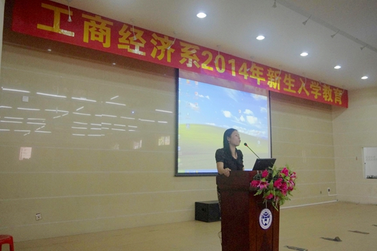 首先,由系主任符群行讲话,他代表工商经济系热烈欢迎2014级新生的到来,为工商经济系注入了新的血液与活力。他鼓励新生新学期新心态,人生可以有很多种生活方式,大学亦是如此,要用积极心态去面对大学生活。