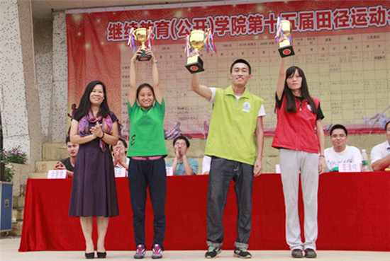 本网讯 2014年10月25日上午,继续教育(公开)学院2014年“无限激情,无悔青春”学生田径运动会在广外大财经学院操场隆重举行。学院院长何勇斌、党委书记苏冬燕、副院长任跃忠、党委副书记曾健文、各系副主任和学生工作负责老师出席了开幕式,全院近千名师生参加了开幕式。开幕式由曾健文主持。