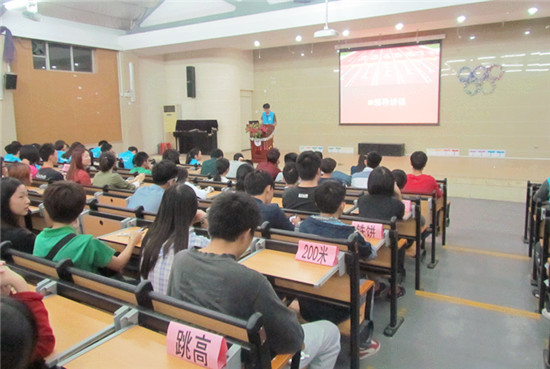 本网讯 为迎接即将到来的校运动会,我院于11月5日晚上在公开学院学术报告厅举行校田径运动会运动员动员大会,院团委学生会和运动会全体成员参加,学生工作办公室主任陈秋林出席并讲话。