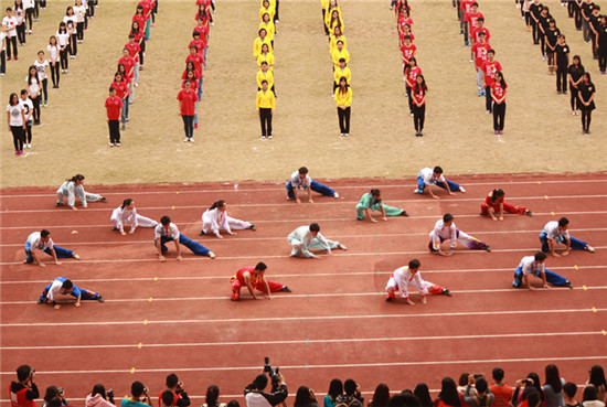在开幕式的最后,各个学院的方阵和各个表演队伍一起跳起了《小苹果》,以响应全民健身的号召。整个过程乐声激昂、场面恢弘,全场的热烈气氛一扫冬日的寒冷,也为开幕式的结束画下了圆满句点。
