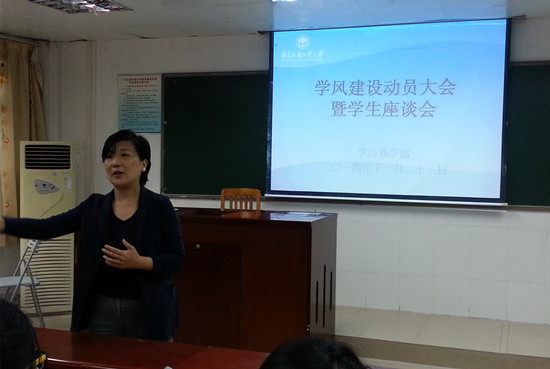 本网讯 根据学院学风建设活动月活动的安排,我部于11月23日下午,在本部三教220召开了成教学风建设动员大会暨学生座谈会,各班班干部及学生代表参加了会议。会议由副主任巫盈主持。