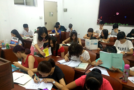 日韩语培训部高年级学员经过前期一个月的冲刺训练,均已熟练掌握了日语语法、大量词汇和必要的考试技能。为了系统检验学习效果,并安抚部分学员因临近考试产生的紧张情绪,培训部决定举行一次适应性实战演练,安排已报名参加12月7日日本语能力测试的学员分别在校本部第三教学楼115、117、118课室进行模拟测试。