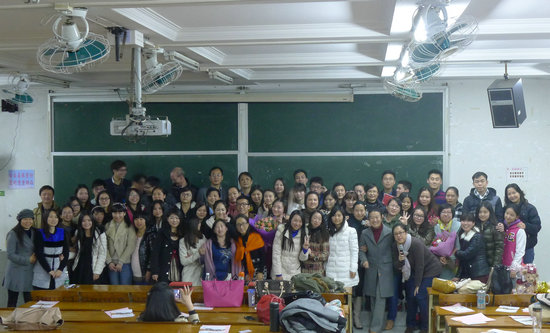 本网讯 12月25日下午,继续教育学院专用外语培训部第八届“魅力之声”英语电影配音大赛在本部二教114课室顺利举行。学历教学部主任林碧玲、专用外语培训部主任吴文权、外教Mark及通用英语培训部刁婷婷老师担任大赛的评委。专用外语培训部全体老师及B、C类全体学员参加了活动。