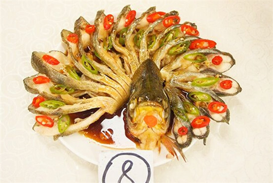 整个比赛现场气氛浓烈,已然成为一场“美食盛宴”。各色菜式,五彩缤纷的味觉冲击,在舌尖上情意绵绵,体现着大学生厨师脑中创新的思维与非凡的技艺。大家的努力得到了评委们的一致认可。其中我院代表队参赛作品“孔雀开屏”的清蒸鱼获得了评委们的一致好评,被誉为全场颜值最高的作品,获得一等奖,最终问鼎金勺桂冠。