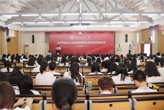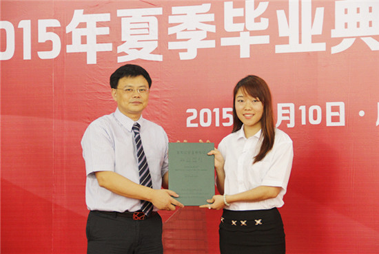 本网讯 2015年5月10日下午,公开学院2015年夏季毕业典礼暨毕业证颁仪式在夏茅校区学术报告厅隆重举行。学院院长何勇斌、党委书记苏冬燕、副院长任跃忠、副书记曾健文、各行政部门主任、教学系主任、副主任、教师代表、校友代表及2014年12月成功申请毕业学生参加了典礼。典礼由曾健文主持。