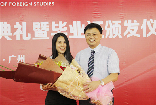 毕业典礼在国歌中拉开内幕。首先,何勇斌院长致辞,他向学业有成、即将告别母校、踏上新的人生征途的毕业生表示最热烈的祝贺!同时,也向毕业生们提出了几点希望:一是希望毕业生们尽快适应新工作、新环境;二是希望同学们把毕业看做新的起点,继续学习,增强能力;三是希望同学们在今后人生中处理好成家与事业的关系;四是希望每位即将踏出校门的学子牢记母校的培养之恩,铭记老师的教导之情,为社会做多做贡献,成为母校的骄傲,学院的自豪;五是希望各位同学以学院为家,以广外为家,常回母校看看,让学校不仅成为美好的记忆,更能成为生活里的一道风景。最后,何勇斌鼓励同学们要以“做自信、自强、拼搏成才的自考人”的精神面对今后的生活,以自信、自爱、自强、自立鞭策自己,为自己的明天谱写灿烂的篇章。