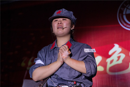 晚上八点,短剧大赛正式开始。本次短剧大赛以“重温红色经典,演绎青春主旋律”为主题。首先上场的是艺术设计与信息管理系带来的《青春进行式》短剧,精彩的表演形象生动的还原了五四运动的时代背景,随后商务英语系带来的《战壕》深深的感动了在场的观众,许多观众都被话剧中士兵的事迹感动落泪。工商经济系的《五四春潮》则还原了广大学生反对巴黎和会割让青岛的爱国情怀。第四个出场的广播电台艺术团联队为大家奉献了我国经典戏剧《白毛女》形象生动的演绎了旧社会将人变成鬼,新社会将鬼变回人的事实,剧中杨白劳的悲惨境地也反应了旧社会广大农民群众的穷苦生活。创意动漫系《金色的鱼钩》则将这一经典故事重新进行了演绎。日语系的《刘胡兰英雄事迹》将刘胡兰舍身贡献不出卖共产党人的崇高精神进行了升华。英语系带来的《英雄故事之落叶归根》重新讲述了60年前在抗美援朝前线上为国捐躯的英烈们重归祖国的故事。