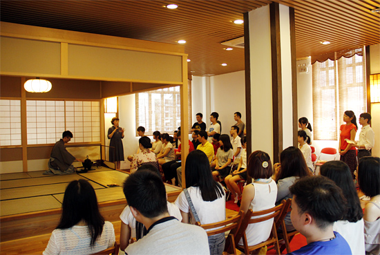 本网讯 5月28日下午,日语系组织丰田班、D03和部分日语自考生共约50人,在由日本驻广州总领事馆出资建成的茶道室“佳乐庵”,参观日本茶道三个“千家”中最大的派系之一日本里千家茶道表演,切身体验日本茶道文化。