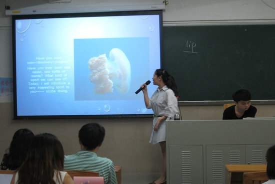 本网讯 6月11日下午,通用英语培训部在本部二教131课室举办了第二十届英语语音语调大赛。大赛是通用英语培训部的传统学生项目,经5月21日预选赛筛选,共有12名选手顺利进入决赛。比赛包括第一轮的“选手自我介绍”、“英文朗诵”、“评委老师现场提问” 等环节,第二轮的“绕口令”、“才艺表演”等环节。