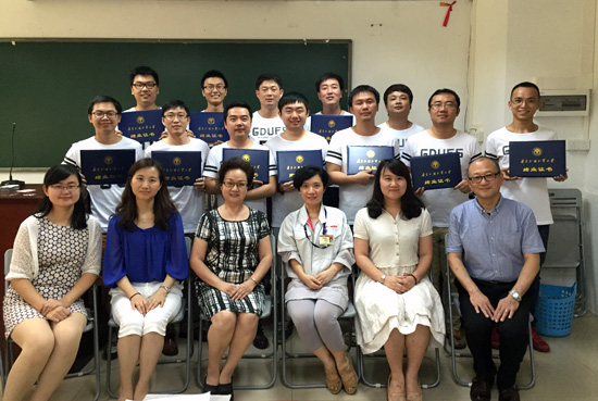 本网讯 6月19日下午,第七期广汽丰田日语培训班结业证书授予仪式在北校区第三教学楼220室隆重举行。副院长任跃忠、日语系主任刘小珊、日韩语项目部负责人蔡京春及广汽丰田公司人才培养中心刘璐璐女士出席了仪式,全体参训学员与教师参加了仪式。