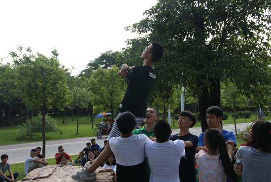 第一项活动“信任背摔”,看似简单,实则不易,需要大家克服恐惧心理,相互信任减少猜忌。先由各队队长示范后其他成员一一尝试,此举展现了团队力量,提高了全体成员心理素质,挑战自我。第二项“坐地起身”更是要求队员之间的团队协作与互相配合,四人分为一小组背靠背,手扣手坐下,一起用力靠脚的力量站起来,此项目让大家明白团队的力量是无穷的。最后一项“第六感”随机抽取两名队友(互相都不知道是谁),蒙面让其中一名队员摸另一名队友的手十秒后,打乱队伍顺序后,再从20人的队伍中摸出刚刚那位队友,此项活动需要成员的细心以及过人的直觉,更是需要成员之间的熟悉与默契。每一项活动看起来似乎都很简单,但实际完成起来却相当困难,不仅考验了成员间的默契程度,更有效地检验了团队协作能力和团队执行力。整个拓展活动虽然只有三个项目,但全部完成历时近四个小时,素质拓展所体现出来的团队精神和协作能力,让大家在建立深厚友谊,加深认识的的基础上,让大家都受益匪浅。
