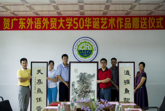 苏冬燕对我系为大学庆贺五十华诞的做法表示赞赏。她说,艺信系的众多学生曾代表大学或学院参加全省各类艺术设计类比赛,屡获佳绩;本次李锋个人作品展是在校学生为母校庆生,表达对母校培养的感恩之情,以自身专业特长向母校汇报学习成果的赤诚心意。毕建勇对我系捐赠给大学的一组书画作品表示感谢,并向艺信系颁发捐赠证书。