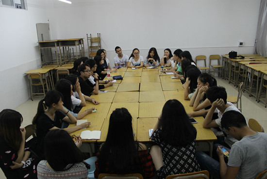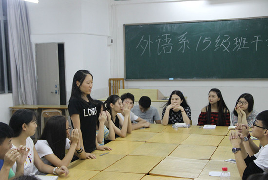 本网讯 10月30日,外语系在夏茅校区举行2015级大一新生班级班干部座谈会。本次座谈会由学生自行组织,高年级师兄学姐与他们完全畅开心扉,用聊天谈心的方式收集问题或困难,大家共同讨论、齐心协力地寻求解决问题的办法。