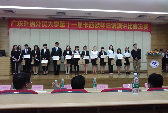 本网讯 11月1日,大学第十一届“卡西欧杯”大学生日语演讲比赛决赛在本部图书馆学术厅隆重举行。本次比赛由东语学院主办,我院2名选手作为日语自学考试的学生与东语学生同台竞技,充分展示了公开日语学子的风采,赢得了现场观众及评委们的一致好评。