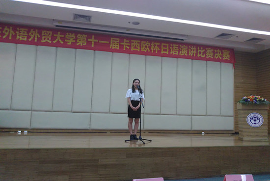 我院外语系日语专业三年级学生苏逢惠,二年级学生吴盈莹经过为期半个月的精心准备分别进入了“卡西欧杯”非零起点组和零起点组的日语演讲比赛决赛。决赛分两轮进行,第一轮4-5分钟主题演讲,第二轮2-3分钟即兴演讲。苏逢惠主题演讲的题目是《中日两国间的文化冲突》,演讲声情并茂,洋溢着青春活力,在强手云集的非零起点组表现不俗,得到评委们的肯定。吴盈莹主题演讲的题目是《印象最深的一句话》,与其他选手慷慨激昂的演讲不同,她选择了父亲不经意间讲的一句朴实却充满爱意的话作为主题,将父爱的伟大与包容娓娓道来,让人动容,在最能考验选手实力的即兴演讲环节,她作为零起点组第一位上场选手表现从容自信。