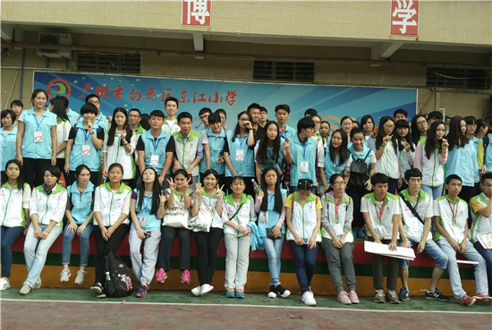 转眼就到了最后一个环节,全体成员于舞台处观看由广外青协公关部带来生动的手语表演。义演结束后,活动参与者集体合影留念。15点40分义教活动宣告圆满结束。部分义教老师接受采访时表示很荣幸能有这样机会参与其中,能够用自己的知识去帮助小学生培养学习的兴趣,同时自己也可以学会用一个新的视角去看待和思考社会上的人和事。最重要的是给自己一个接触社会的机会,积累经验,为将来到社会工作打下基础。