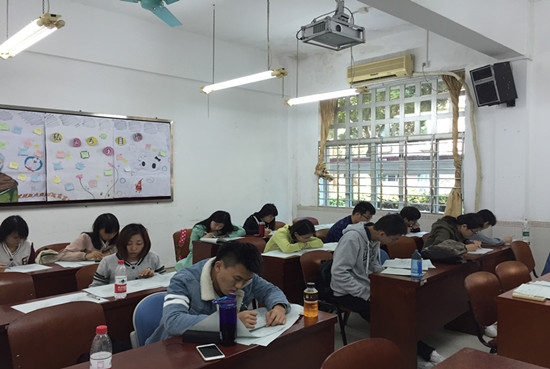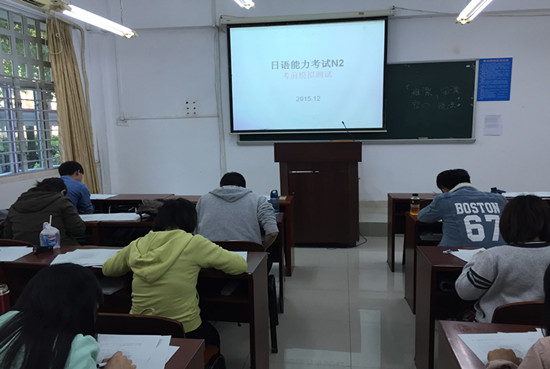 本网讯 日语能力测试是外语系日语专业学生最为重要的考试之一,将于12月6日举行。为进一步落实备考减压工作,12月4日下午,外语系于三教120室进行了第二次日语能力考(N2\N3)模拟考试。