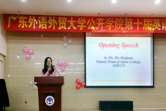 胡海娟代表学院对进入本次英语综合技能大赛决赛的选手表示祝贺,指出本次比赛是为了更好地激发学生学习英语的热情,夯实英语基础知识,展示和提升学生运用英语表达思想的技能。