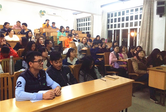 本网讯 3月16日晚,继续教育中心举办的文萃微讲坛系列第八讲——《商务礼仪》在北校区第三教学楼101课室举行。主讲人老师张艳从见面礼仪,着装礼仪、商务谈判礼仪、宴请礼仪和电话礼仪等方面讲授了商务礼仪的基本知识。