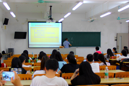 本网讯 5月26日下午,国商系中文T吧讲座在北校区六教B201课室开讲了。本次讲座主题为《管理科学与艺术》,邀请了董黎明教授作为主讲嘉宾。系主任杨妙新和相关老师及我系国贸专业的部分同学参加了本次讲座。