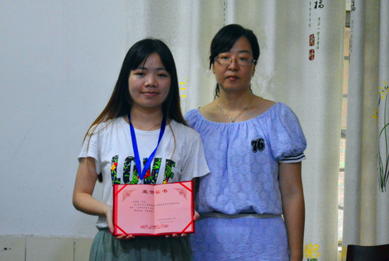 杨甜甜给优秀毕业生颁奖