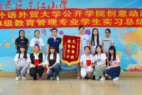 本网讯 6月3日,创意动漫系16届教育管理专业毕业生实习总结暨表彰大会在广州市白云区东江小学举行。大会由东江小学教学主任杨甜甜主持,我系教研室主任吴礼威及相关教师与实习生代表出席了会议。