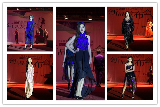 作品简介:在中国传统里,紫色是尊贵的颜色。紫色——代表优雅,高贵,魅力,自傲与神秘,所以也有“紫色的热情”这一种说法,紫色虽不象红色那么火热,但它似乎也可以象红色那么快的烧尽所有的东西。所以运用了紫色的花朵不齐的花瓣代表燃烧,用透明的黑色雪纺衬托燃尽的花瓣,在花的中间镶上深紫色的钻石,当走在舞台上灯光照射发出闪光,若隐若现。