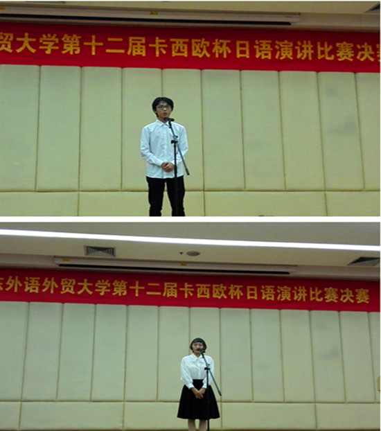 本网讯 10月30日下午,广东外语外贸大学第十二届卡西欧杯日语演讲比赛决赛在北校区图书馆负一楼报告厅隆重举行。本次赛事由东语学院主办,共有24名选手参加。我院派出2名选手参赛,均载誉而归。其中,15级日语专科1班的潘彦森同学荣获低年级组一等奖,16级日语本科2班的谢淑颖同学荣获高年级组三等奖。