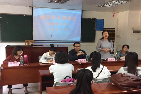 本网讯 11月4日下午,继续教育中心在三教220课室召开师生座谈会。会议由继续教育中心副主任肖丽芳主持,出席会议的嘉宾有继续教育中心主任张开荣、副主任巫盈、项目主任廖景智、项目主任张艳。