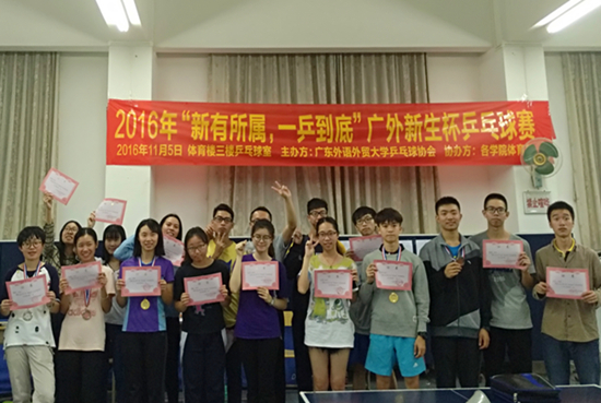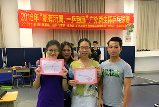 本网讯 11月5日上午9点,广东外语外贸大学2016年“新有所属,一乒到底”广外新生杯乒乓球比赛在南北校乒乓球室同时拉开战幕。我院选派的4名乒乓球选手分别参加了小组赛、个人赛淘汰赛和个人赛八强赛三个阶段的比赛,经过一天的激烈的比赛,我院国际商务系刘佳芸、文羚璀两位同学分别夺得女子单打个人赛第四名和第五名。