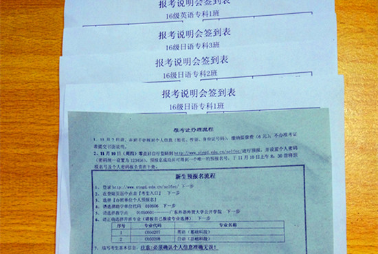 本网讯 11月7日、8日下午,学院2017年1月统考报名报考工作即将开始,为了更好完成本项工作,外语系对本部校区16级英语专科及日语专科的学生分场次举行了报考说明会。夏茅校区也同期举行,报考报名工作在有条不紊地开展中。