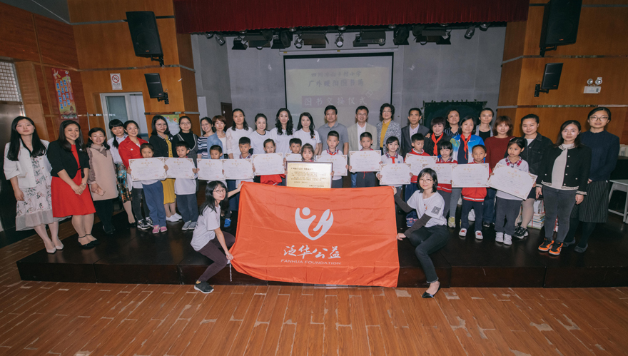 活动最后进行图书交接仪式,吴玉爱校长代表师生将图书赠予泛华公益代表万俊,万俊分别将捐赠证书颁发给广外附属中(小)学、广外继教(公开)学院以及各捐赠图书班级。