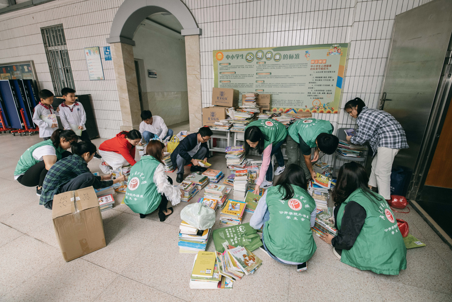 本网讯 5月7日下午,“广外暖阳图书角”扶贫爱心图书捐赠仪式在广外附属中小学校云山礼堂举行,此次活动由继续教育(公开)学院党委、附属中小学校长与深圳泛华公益联合筹办。学院党委书记邵兵、学工办主任陈秋林,附属中小学校长吴玉爱、校长助理张慧华、学生处主任郑文静、学生处副主任余凤,深圳泛华公益理事长万俊、秘书长李珍妮及附小老师和学生代表出席了捐赠仪式。本次募捐图书共3179册,远远超出为凉山六所村小募集600册图书的计划,其中继续教育(公开)学院教职工募捐120册,广外附属小学募捐3059册。