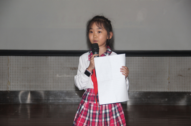 广外附小学生代表二年级(3)班刘佳蕊同学发表捐书感言。她说我们从图片中了解到凉山小朋友的生活学习情况,他们衣服破旧,教室里光线昏暗,仅有几张木桌木凳,但是墙上依然写着“好好学习,天天向上”!凉山小朋友求知的渴望深深感动了我们,我和同学们都纷纷拿出自己非常喜欢的图书捐赠。通过这次捐赠活动,让我们感到,在以后的学习中,要更加珍惜现有的学习环境,继续努力、加油刻苦学习,不浪费时间和金钱,学习更多的知识丰富自己,让自己成为一个有用之才。