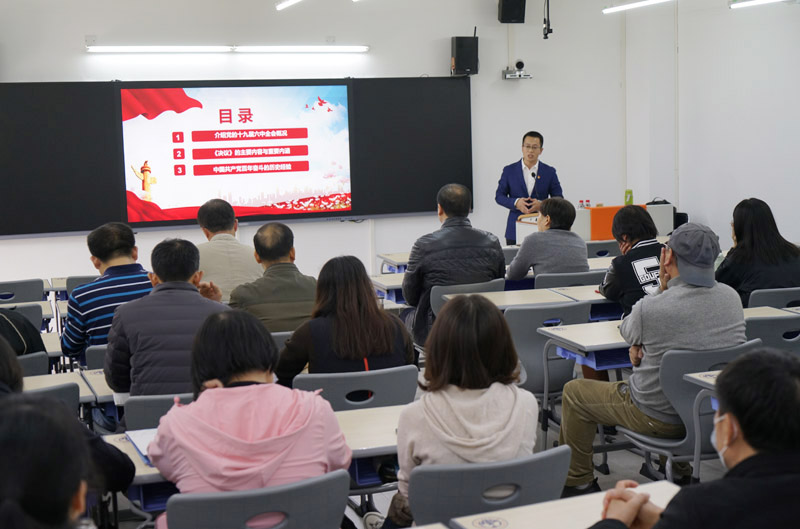本网讯 为加深对党的十九届六中全会精神的理解,12月16日下午2:30,学院邀请大学百年党史宣讲团成员、马克思主义学院教授曾荣解读党的十九届六中全会精神,学院领导、各部门(系部)正副主任及全院党员到白云山校区第一教学楼南楼324课室聆听,讲座由学院党委书记邵兵主持。