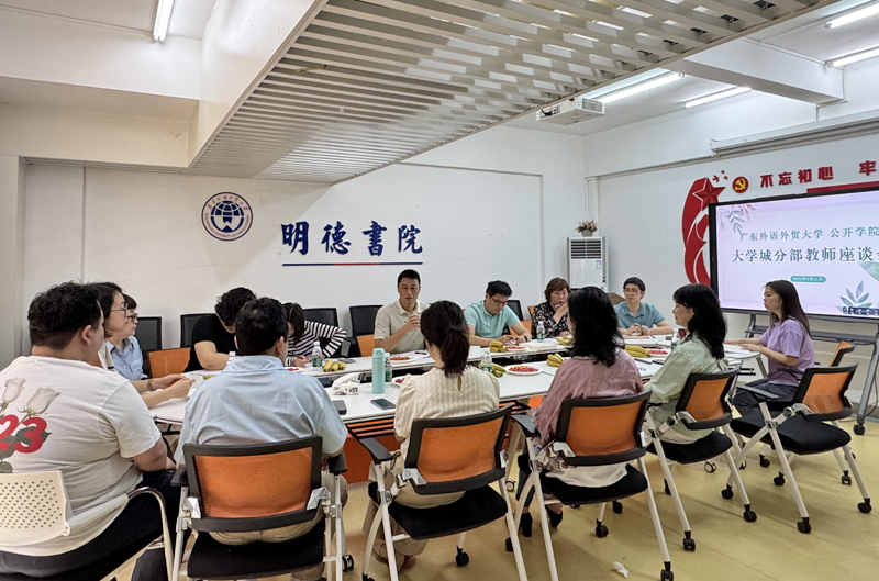 本网讯 为深入贯彻中央八项规定精神学习教育,全面贯彻落实党的教育方针,学院党委于4月11日召开公开学院大学城分部教师座谈会,倾听教师心声,凝聚育人合力。学院党委副书记曾继平、院办党建宣传副主任、各党支部书记、学生第三党支部支委、大学城分部全体教职工齐聚明德书院崇文室,围绕师德师风建设、教师队伍作风建设、学生学风建设等议题展开深入交流,共谋学院高质量发展新路径。