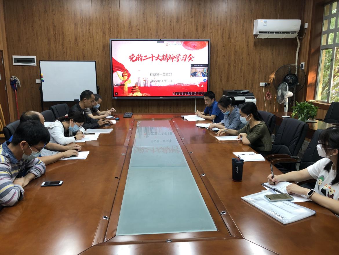 本网讯 11月18日,行政第一党支部在北校区第三教学楼会议室召开学习党的二十大精神研讨会,会议由正处级纪检监察员刘哲领学。支部书记陈秋林主持会议,支部全体党员参加。