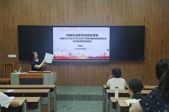 本网讯 5月26日下午,学院党委书记胡海娟为教工党支部讲授“构建有温度有高度的课堂”主题党课,支部全体党员认真聆听了党课。