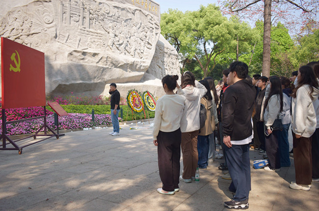 下午3时,全体人员整齐列队,在革命烈士纪念碑前肃立默哀,深切缅怀为民族解放和国家富强英勇献身的革命先烈。大家在鲜红的党旗前高举右拳,铿锵有力地重温入党誓词。庄严的誓言彰显了新时代青年学子不忘初心、牢记使命的坚定信念。