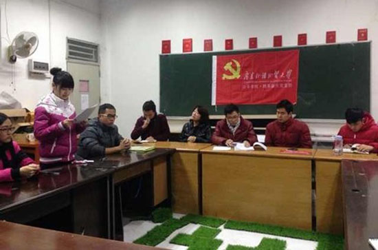 本网讯 2013年12月17日,公开学院跨系联合党支部于第二教学楼106B召开了秋季学期支部党员座谈会。党支部书记吴宇辉、副书记张旭新及支委成员和全体正式党员、预备党员参与座谈会。