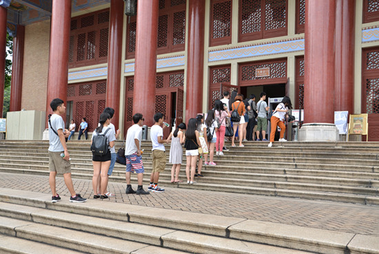 24日下午一点,虽然烈焰如火,但是大家心怀激动,准时在三教大厅集合,有序地一个个排队上车,准时出发前往广州孙中山纪念堂。