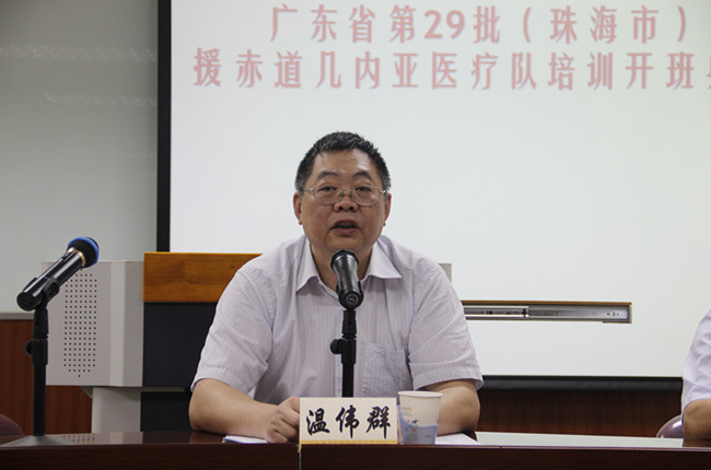 温伟群表达了省卫计委对此次西班牙语培训的重视和对学员终身学习态度的赞赏,希望学员们珍惜学习机会,端正态度,遵守组织纪律,以高远的境界和广阔的视野学习,并学以致用。珠海市卫生计生局局长陶海林,第29批援赤几医疗队队长陈雷也一一作了发言。
