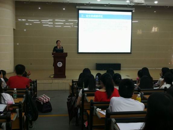 为了更好地指导自考生开展学位论文写作,当日下午2时30分,学院副院长胡海娟应邀在公开学院学术报告厅为报名申请学位的自考生做学士学位论文写作指导讲座。刚进场,就引来了全体学生热情欢迎的掌声。