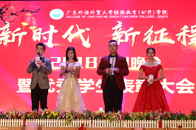 本网讯 12月27日,我院2018“新时代、新征程”元旦晚会暨学生表彰大会在公开学院大舞台隆重举行,学院院长何勇斌、党委书记苏冬燕,副院长孙亚玲、任跃忠、胡海娟,党委副书记曾健文,院长助理李梅庭,各系主任、副主任以及部分教职工、学生参加了此次盛会。